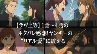 Netflixの恋愛リアリティーショー『ラヴ上等』がついに完結!元ヤンたちの恋と友情が交錯する最終回の結末に、SNSでは「号泣した」「つーちゃん最高!」と話題が止まらなかったんだよね。今回はそんな『ラヴ上等』の最終回ネタバレ&感想を、わたし...