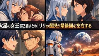 NHKドラマ『火星の女王』第2話、めちゃくちゃ濃かったよね!物語が一気に動いて、リリ(スリ・リン)が「地球帰還計画」に隠された衝撃の真実を知るという展開に、息をのんだ人も多いはず。タグレスへの差別や、母・タキマ(宮沢りえ)との対立など、テー...