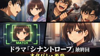 ついにドラマ『シナントロープ』の最終回が放送されたね!もうね、伏線回収がすごすぎて鳥肌止まらなかった…!都成(水上恒司)と水町(山田杏奈)、そして折田(染谷将太)の三人の関係が、最後の5分で一気に崩れ落ちる展開、ほんと心臓に悪いレベルだった...