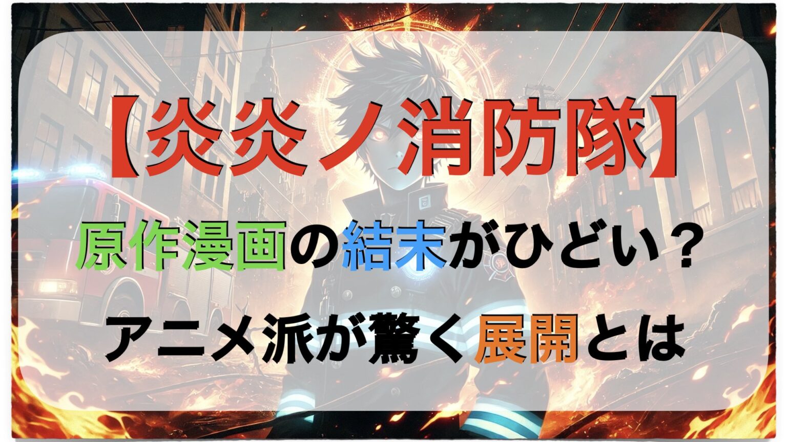 『炎炎ノ消防隊』の原作ラストが「ひどい」って言われちゃう理由、そしてそこにあるファンの想いや期待とのギャップ、全部含めてすごく深いテーマがあったな〜って感じたよね!