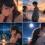 車いすラグビーの激しい試合シーン、考え込む人物、ピアノと過去の影、そして見上げる星空を4つのパネルで描いたイメージ ドラマ