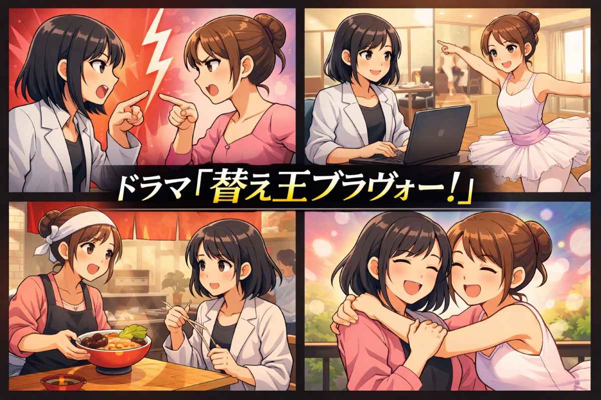 「替え玉ブラヴォー!」は、ただの友情ドラマじゃないの。ラーメンとバレエという、まるで相反する2つの世界を掛け合わせた、ちょっとクセになるコメディなんです。
