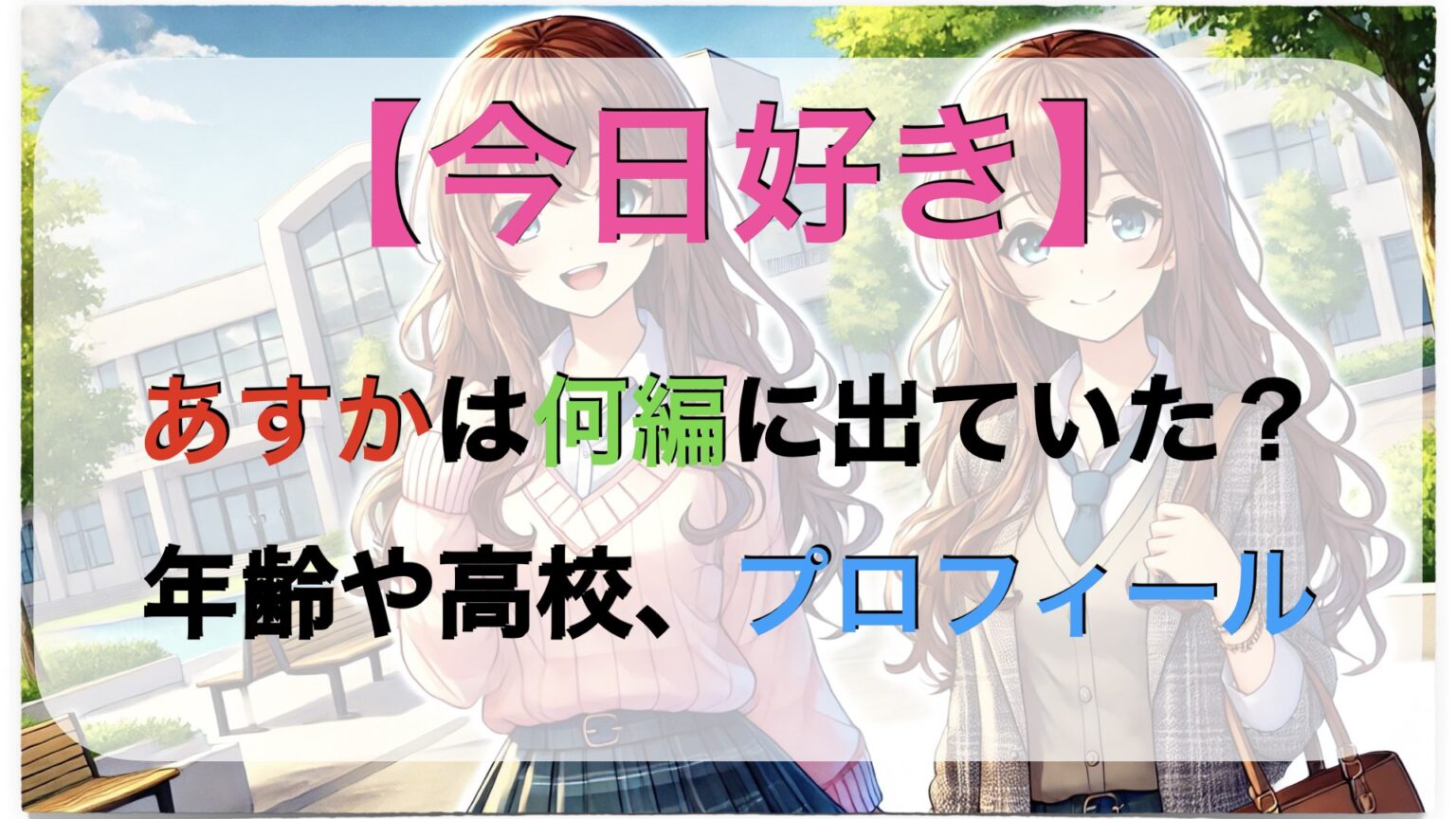 この記事では、そんな清水あす香ちゃんの年齢や高校、恋愛歴をはじめ、これまでの「今日好き」での恋模様や、今後の活動についても詳しく紹介していくよ!