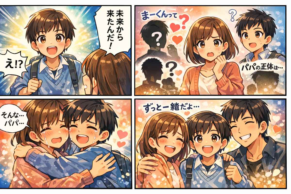 でもね、ここで描かれてるのは“血より深い家族の絆”。それに、颯太自身が二人をつなぎ直すために2036年からやってくるっていう展開も、すごくエモいの。