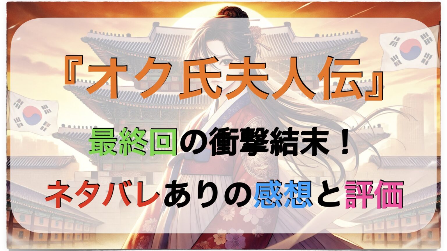 韓国ドラマ『オク氏夫人伝』がついに完結!最終回では涙なしでは見られない感動の展開が待っていました…!
