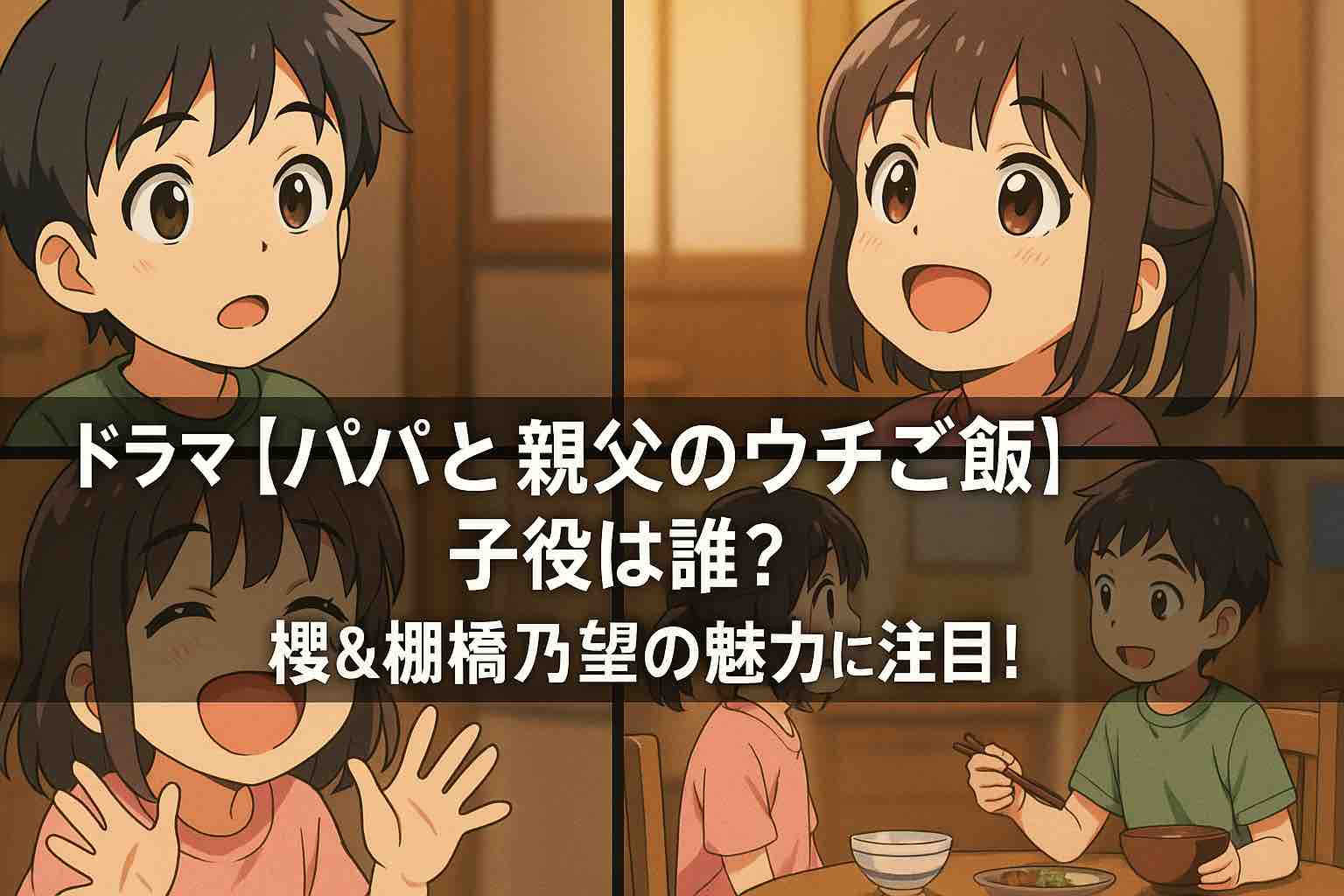 - ✔ ドラマ『パパと親父のウチご飯』で注目の子役コンビ・櫻くんと棚橋乃望ちゃんのプロフィールと経歴