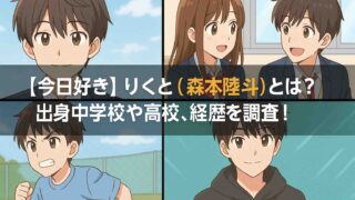 リアリティショー 【今日好き】りくと(森本陸斗)とは?出身中学校や高校、経歴を調査! 「今日、好きになりました。」チュンチョン編に出演中の森本陸斗(りくと)くん、もうチェックした?スターダストプロモーション所属の期待の新星で、ドラマにも多数出演している今注目の高校生俳優なんだよ!この記事では、りくとくんの高校・中学・経歴・恋... リアリティショー