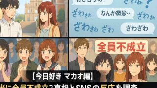 リアリティショー 【今日好き マカオ編】本当に全員不成立?真相とSNSの反応を調査 ABEMAの大人気恋リア「今日、好きになりました。」のマカオ編が放送中止になったあと、公式から“全員不成立”って発表があったんだよね。でも視聴者の中では「ほんとにそうなの?」「成立してたけど消されたんじゃない?」っていう憶測がいっぱい出てき... リアリティショー