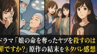 ドラマ ドラマ『娘の命を奪ったヤツを殺すのは罪ですか?』原作の結末をネタバレ感想! 2025年秋ドラマ『娘の命を奪ったヤツを殺すのは罪ですか?』は、ただの復讐劇じゃないんだよね。娘をいじめで亡くした母親が、全身整形で若返り、加害者たちに復讐していくという衝撃的なストーリー。だけど、その裏には“母の愛”と“赦し”がしっかり描... ドラマ