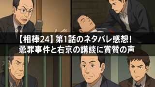 ドラマ 【相棒24】第1話のネタバレ感想!冤罪事件と右京の講談に賞賛の声 ついに帰ってきた『相棒24』!2025年10月15日放送の第1話「死して償え」は、シリーズ25周年の幕開けにふさわしい超濃厚な初回スペシャルだったよ。杉下右京(水谷豊)と亀山薫(寺脇康文)の黄金コンビが再び難事件に挑む姿に、懐かしさとワクワ... ドラマ