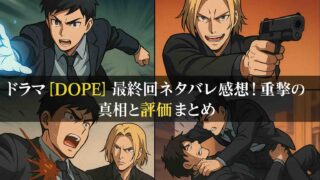 ドラマ ドラマ【DOPE】第8話ネタバレ感想!衝撃展開の解説と評価まとめ TBS系金曜ドラマ『DOPE 麻薬取締部特捜課』第8話が放送されて、ネットでもめちゃくちゃ盛り上がってたんだよね。特に陣内鉄平の脱走や、才木優人の父に関する衝撃の真実が明かされたシーンは「嘘でしょ!?」って声がSNSに溢れてたの。この記事で... ドラマ