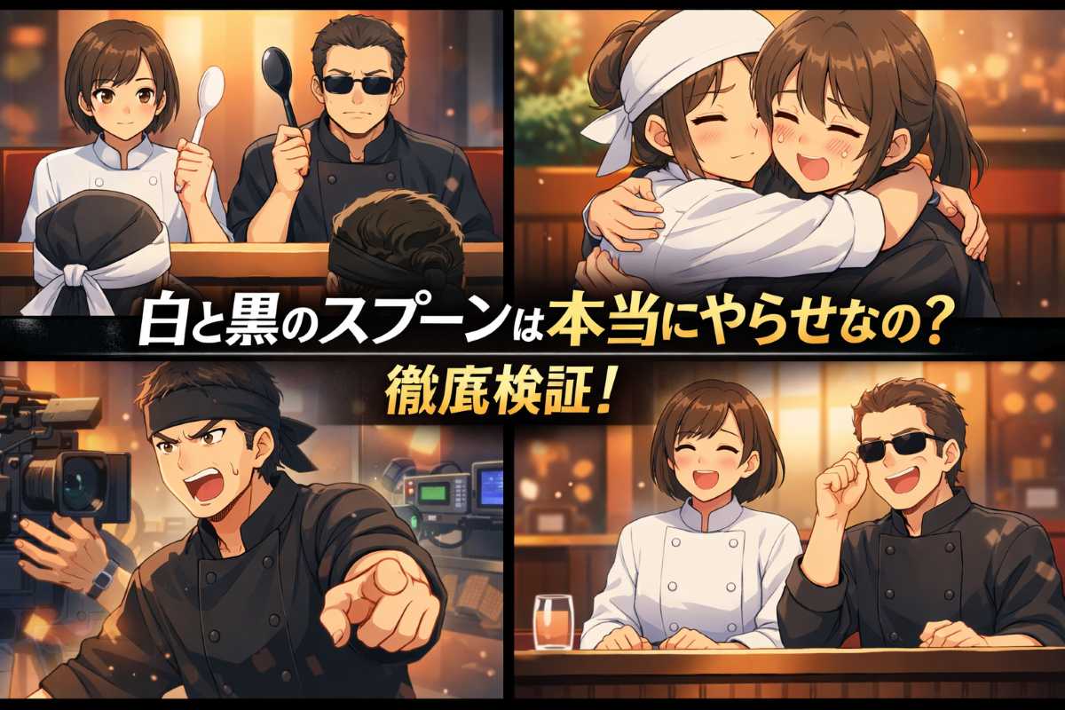 - ✔ 白と黒のスプーンに台本による勝敗操作や意図的なやらせ行為は確認されていない